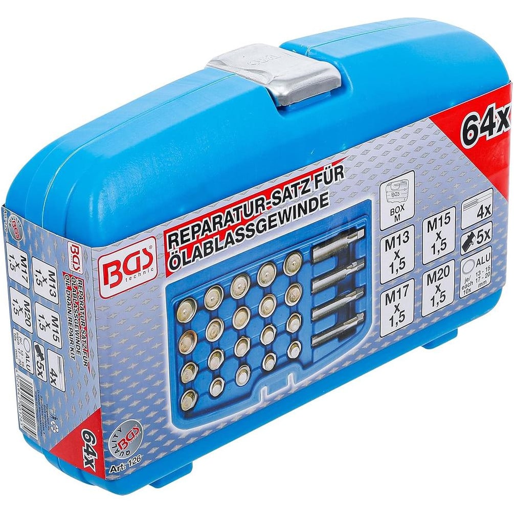 Ref. BGS-126En savoir + sur Kit de Réparation Filetage Vidange d Huile 64 pcs - Réparation Facile et Complète, Acier, Pro - D-Work