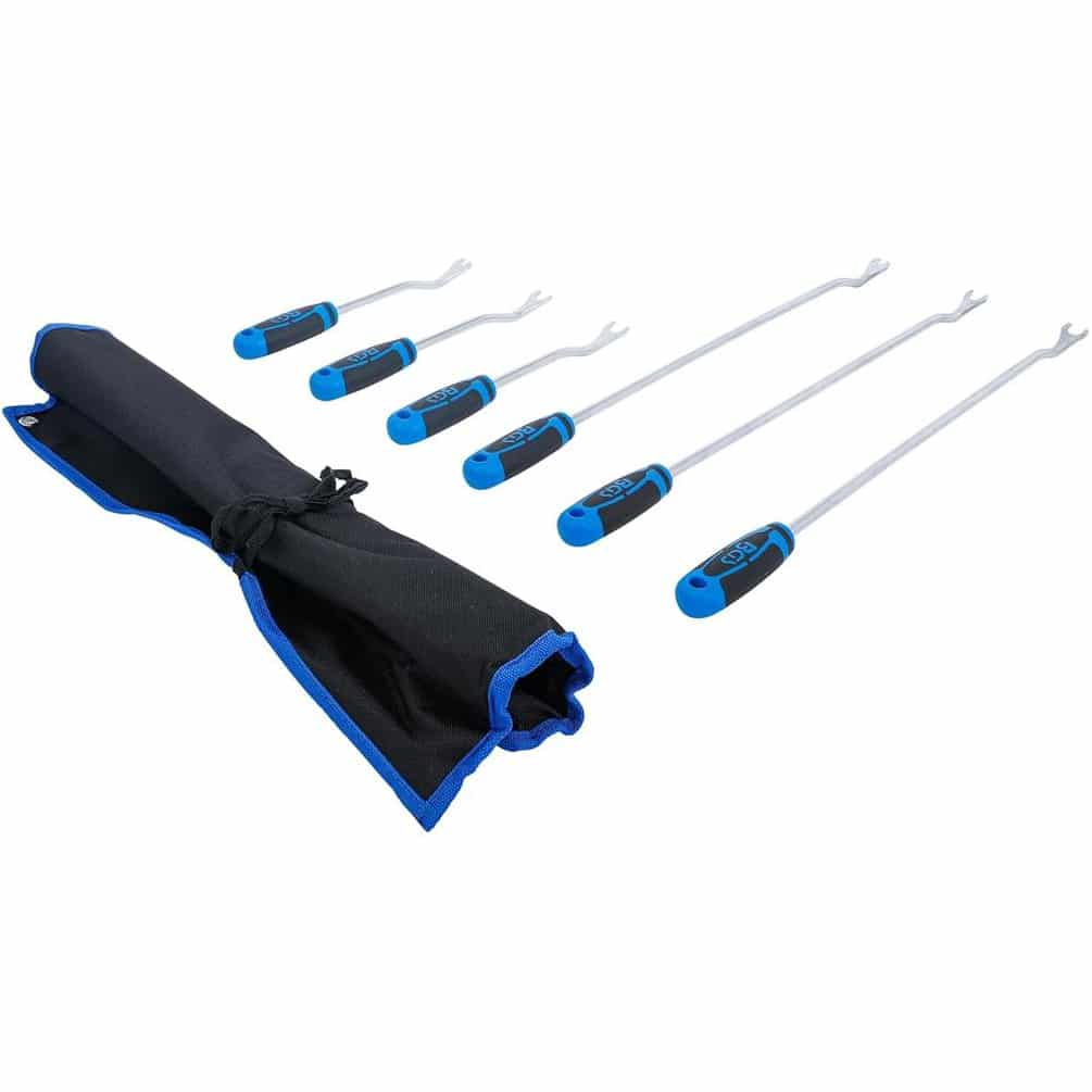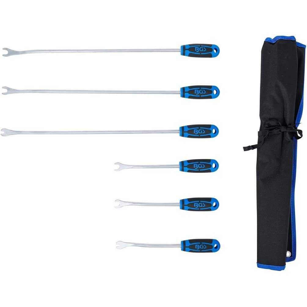 L'Outil de Dépose Agrafes d'Habillage BGS est un accessoire indispensable pour retirer facilement et proprement les agrafes utilisées dans l'habillage intérieur automobile ou autres travaux de finition. Conçu en acier robuste, il garantit une longue durée de vie et une efficacité optimale lors de la dépose d'agrafes sans endommager les surfaces.Caractéristiques principales