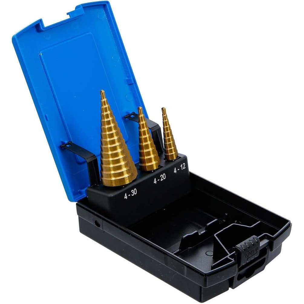 Coffret de 3 Forets HSS Étagés D.4-12/ 4-20/ 4-30 mm x Q. Cylindrique - Outil de Perçage et Durable pour Métal - Diamwood