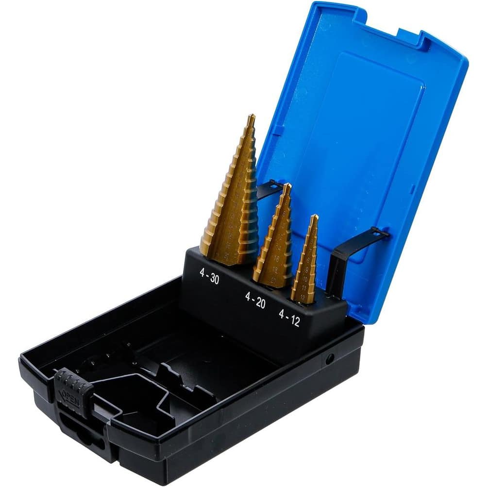 Jeu de Forets Étagés 3 pcs D.4-30 mm - Nitrure de Titane - Perçage Précis et Durable, Acier - D-Work