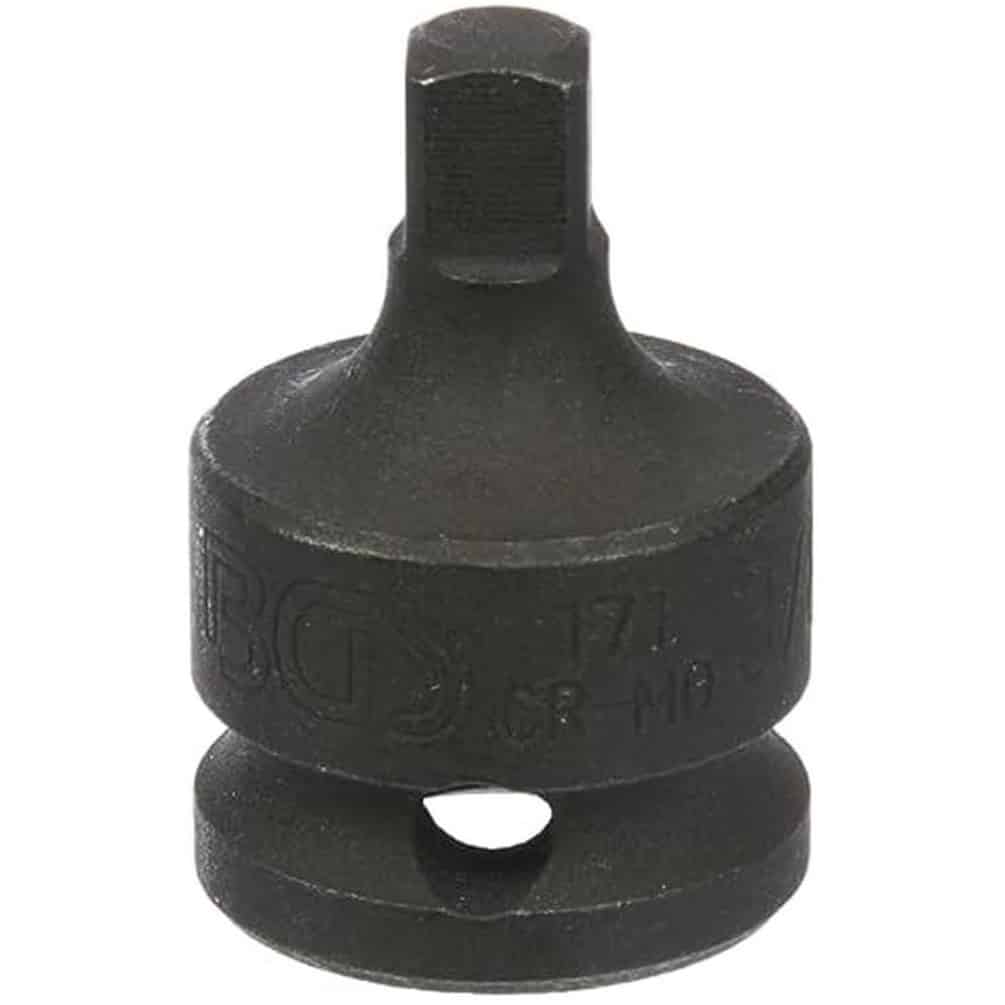 Adaptateur de clé à douille à choc BGS, conçu pour permettre l'utilisation d'embouts de 6,3 mm (1/4") sur des outils à douille femelle de 10 mm (3/8"). Fabriqué en acier robuste, cet adaptateur assure une transmission efficace du couple tout en garantissant une grande durabilité.Caractéristiques principales
