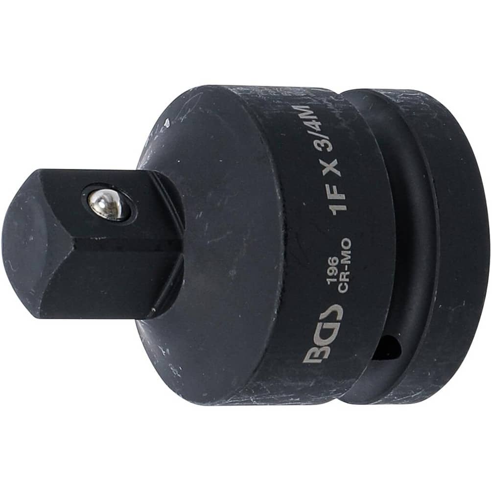 Adaptateur de clé à douille à choc BGS, conçu pour permettre l'utilisation de douilles de 25 mm (1 pouce) avec des outils à entraînement mâle de 20 mm (3/4 pouce). Fabriqué en acier robuste, cet adaptateur assure une transmission efficace du couple tout en garantissant une grande durabilité.Caractéristiques principales