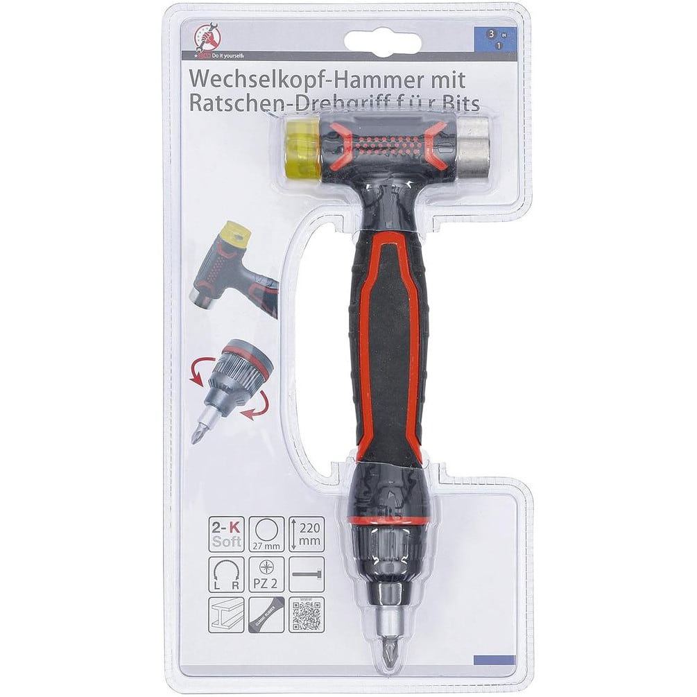 Ref. BGS-20800En savoir + sur Maillet 3-en-1 avec Tête Interchangeable et Poignée Rotative à Cliquet - Polyvalent et Pratique - D-Work