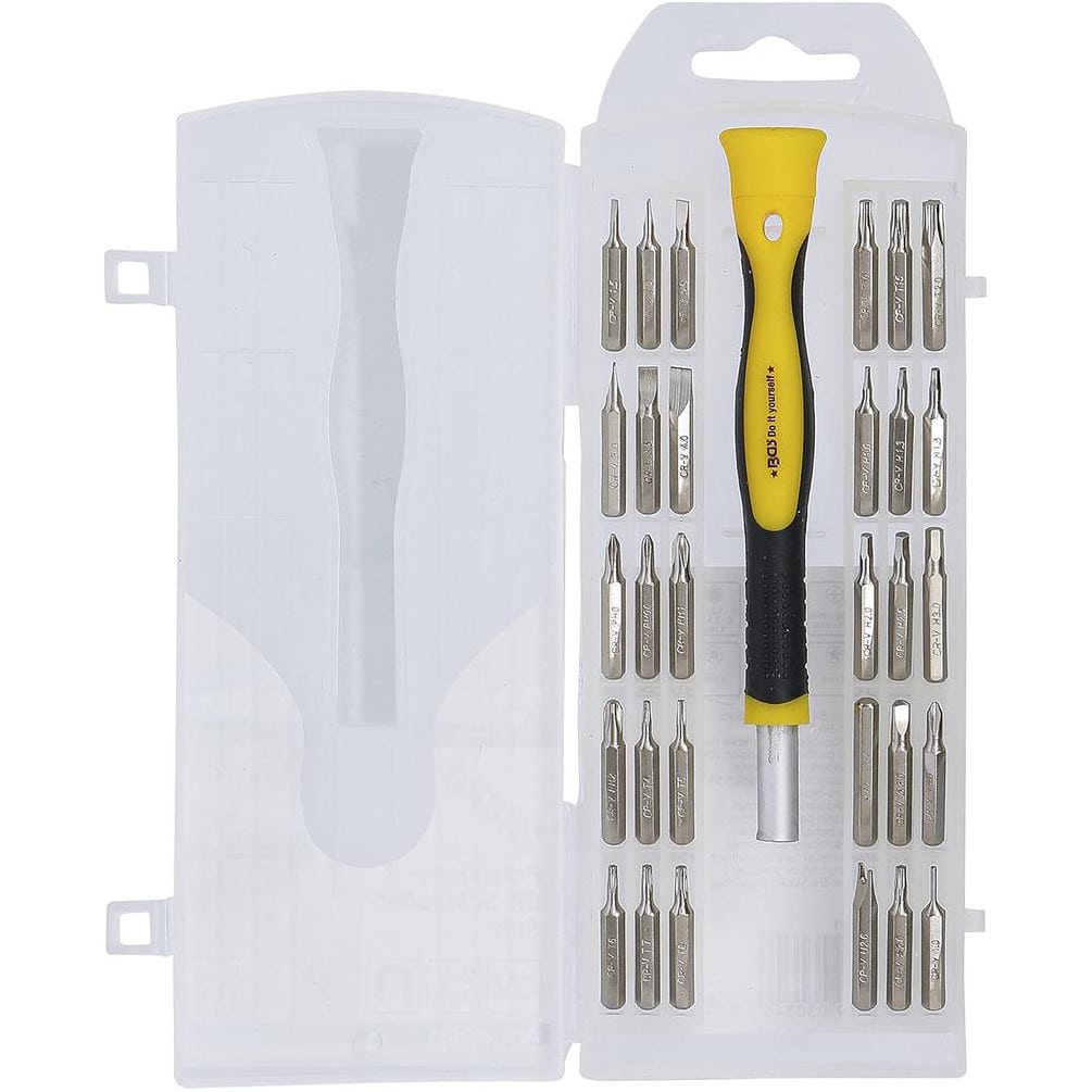 Ce jeu d'embouts pour tournevis de précision BGS comprend 31 pièces variées, conçues pour répondre aux besoins des bricoleurs et professionnels exigeants. Fabriqué en acier robuste, ce set offre une grande polyvalence grâce à ses multiples formats adaptés à différents types de vis. Idéal pour les travaux de précision, il garantit une manipulation aisée et un ajustement parfait pour chaque tâche.Caractéristiques principales