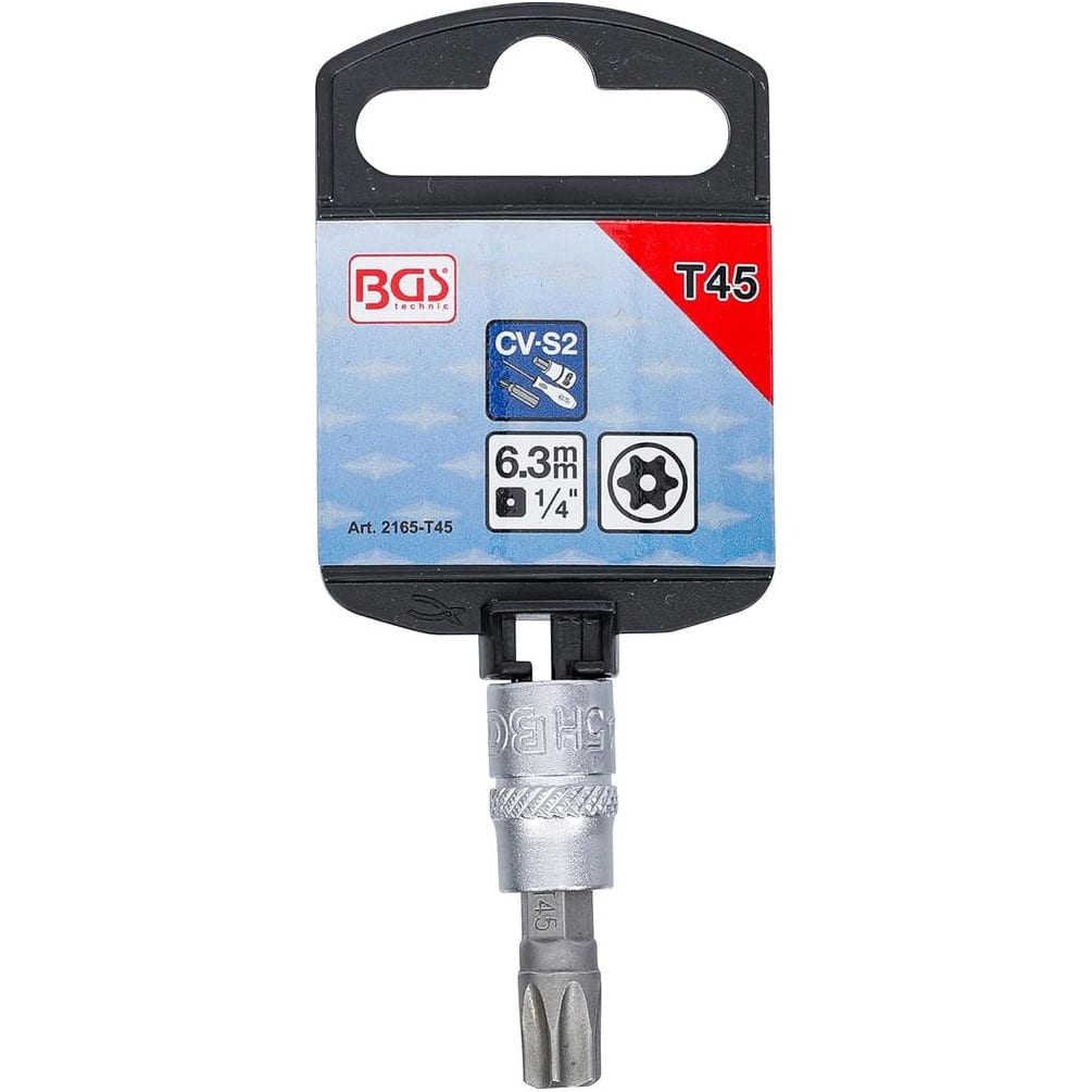 Ref. BGS-2165-T45En savoir + sur Douille à Embouts 6,3 mm (1/4) Profil T Torx T45 - Acier Résistant - Précision et Fiabilité - D-Work