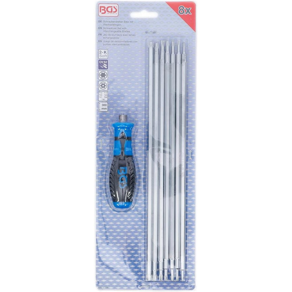 Ref. BGS-2326En savoir + sur Jeu de 8 Tournevis à Lames Échangeables - Profil T Torx avec Perçage - Précision et Polyvalence - D-Work