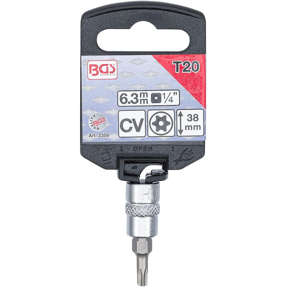 Ref. BGS-2359En savoir + sur Douille à Embouts 6,3 mm (1/4) Profil T Torx avec Perçage T20 Précision et Fiabilité, Acier - D-Work