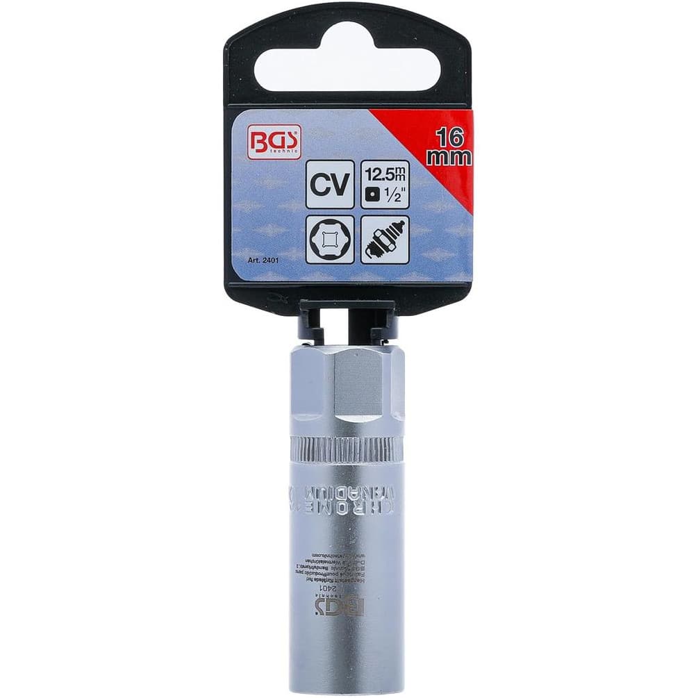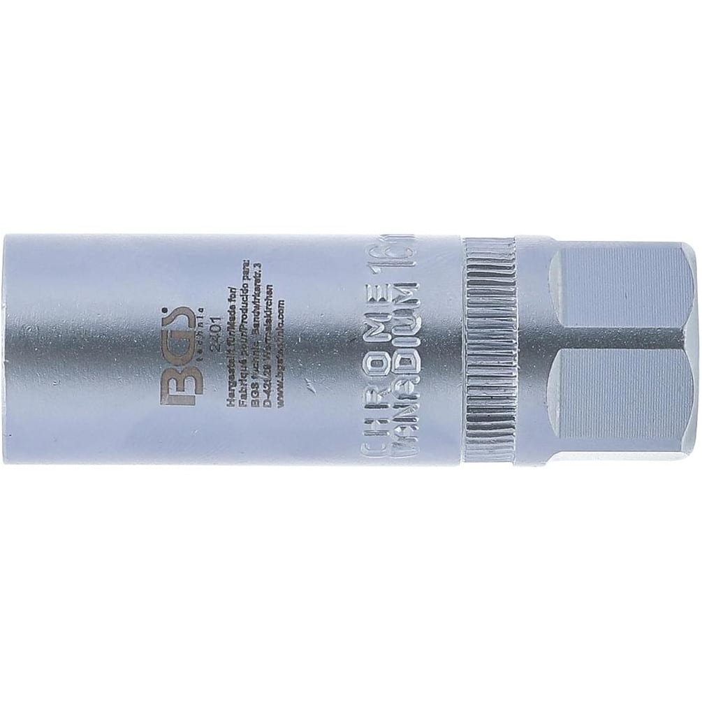 La Douille de Bougie Six Pans 12,5 mm (1/2") - 16 mm de la marque BGS est un outil indispensable pour le démontage et le montage des bougies d'allumage. Conçue en acier robuste, elle garantit une excellente résistance à l'usure et une précision optimale lors de son utilisation. Adaptée aux professionnels comme aux amateurs de mécanique, cette douille facilite les interventions sur moteurs automobiles.Caractéristiques principales
