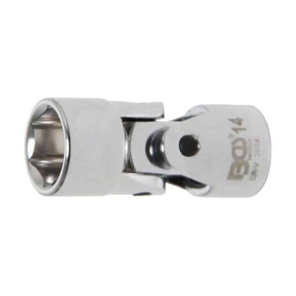 La Douille d'Articulation à Cardans Six Pans 10 mm (3/8") - 14 mm de la marque BGS est un outil de précision conçu pour les travaux mécaniques nécessitant une grande flexibilité et robustesse. Elle permet de transmettre un couple tout en compensant les désalignements entre les axes, idéale pour les réparations automobiles et les travaux d'assemblage.Caractéristiques principales