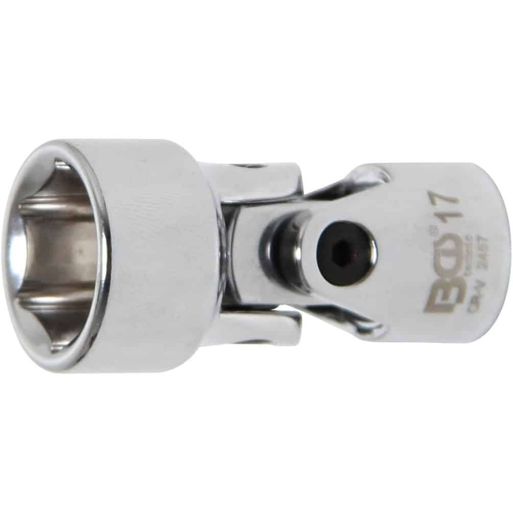 La Douille d'Articulation à Cardans Six Pans 10 mm (3/8") - 17 mm de la marque BGS est un outil de précision conçu pour les travaux mécaniques nécessitant une grande flexibilité et robustesse. Elle permet de transmettre un couple tout en compensant les désalignements entre les axes, idéale pour les réparations automobiles et industrielles.Caractéristiques principales