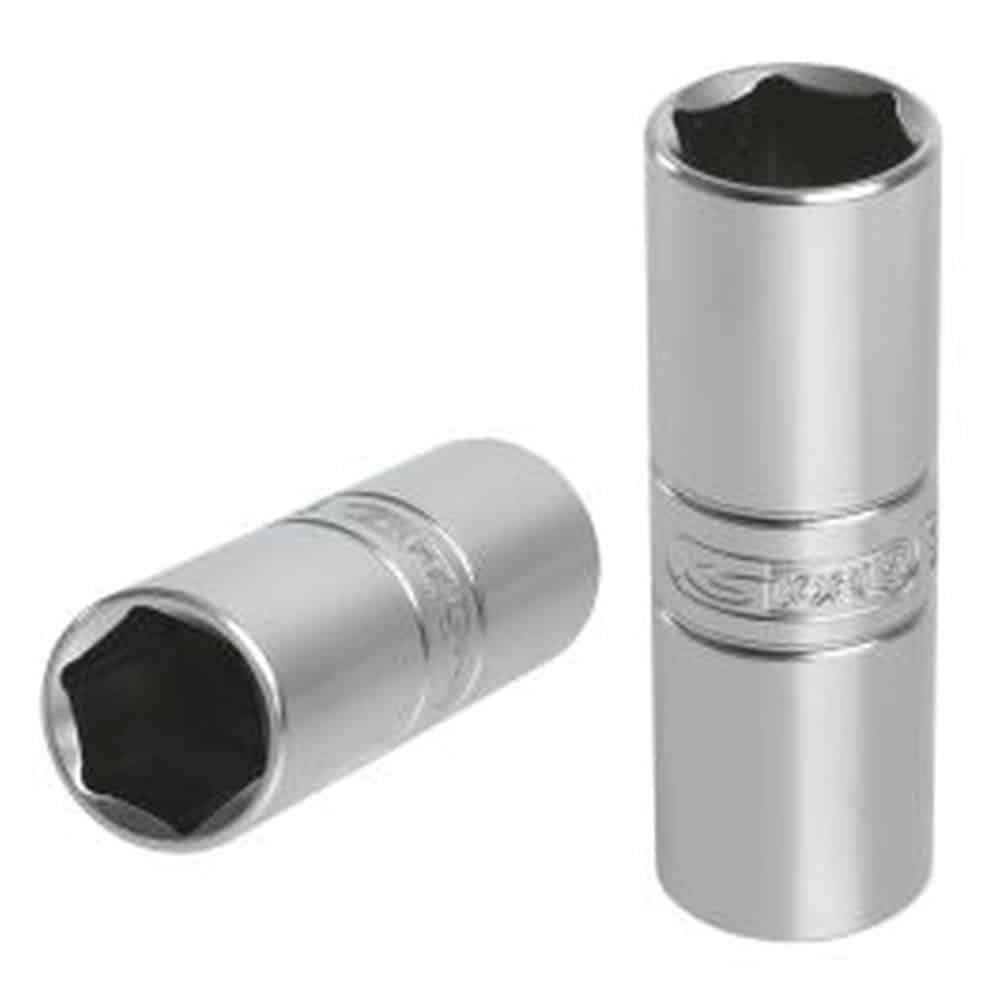 Utilisez cette douille avec une clé à cliquet adaptée pour démonter ou monter les bougies d'allumage sur les moteurs automobiles. Assurez-vous que la douille est bien positionnée sur la bougie avant de tourner pour éviter tout glissement ou dommage. Convient pour les travaux d'entretien et de réparation automobile.Fiche technique