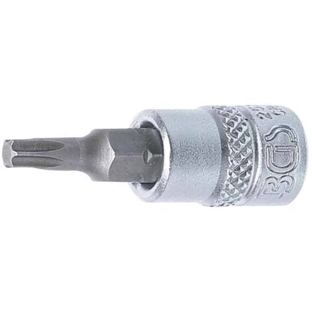 La douille à embouts 6,3 mm (1/4") profil T Torx T9 de la marque BGS est un outil de précision conçu pour les travaux de vissage nécessitant une fixation sécurisée et un bon couple de serrage. Adaptée aux vis Torx, elle garantit une excellente prise en main et une durabilité accrue grâce à sa fabrication robuste.Caractéristiques principales
