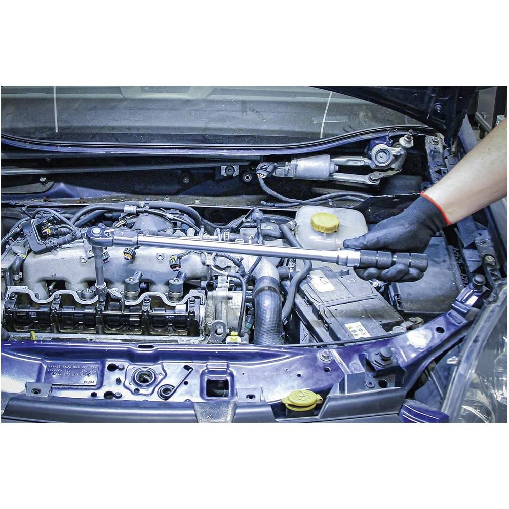Utilisez cette clé dynamométrique pour serrer les écrous et boulons avec un couple précis entre 20 et 100 Nm. Insérez l'outil enfichable de 9 x 12 mm, réglez le couple désiré, puis appliquez la force jusqu'au déclenchement. Idéale pour la mécanique automobile, la maintenance industrielle et les travaux de précision.