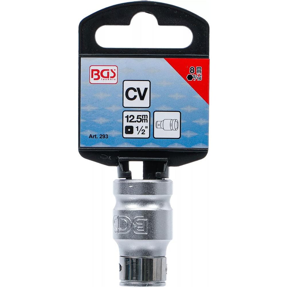 Adaptateur avec bille de retenue BGS de 12,5 mm (1/2") avec six pans intérieurs de 8 mm (5/16"). Conçu pour assurer une fixation sécurisée et précise lors de l'utilisation d'outils manuels ou électriques. Cet adaptateur est idéal pour les professionnels et les bricoleurs recherchant fiabilité et durabilité.Caractéristiques principales