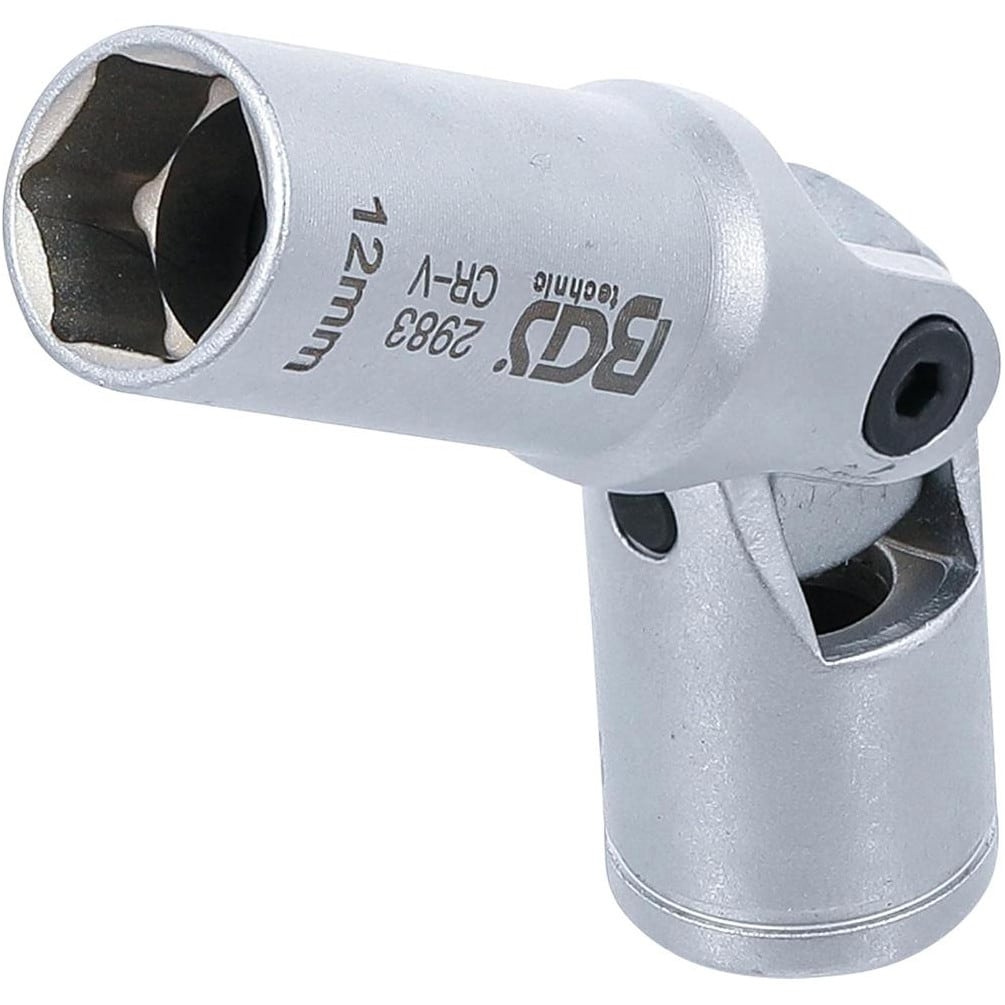 La Douille Articulée de Bougie hexagonale 10 mm (3/8") - 12 mm de la marque BGS est un outil indispensable pour le démontage et le montage des bougies d'allumage dans les moteurs. Sa conception articulée permet un accès facilité dans les espaces restreints et difficiles d'accès, garantissant une manipulation précise et efficace.Caractéristiques principales