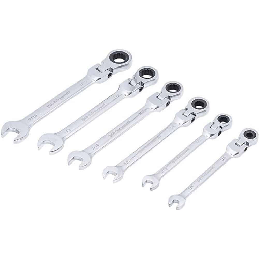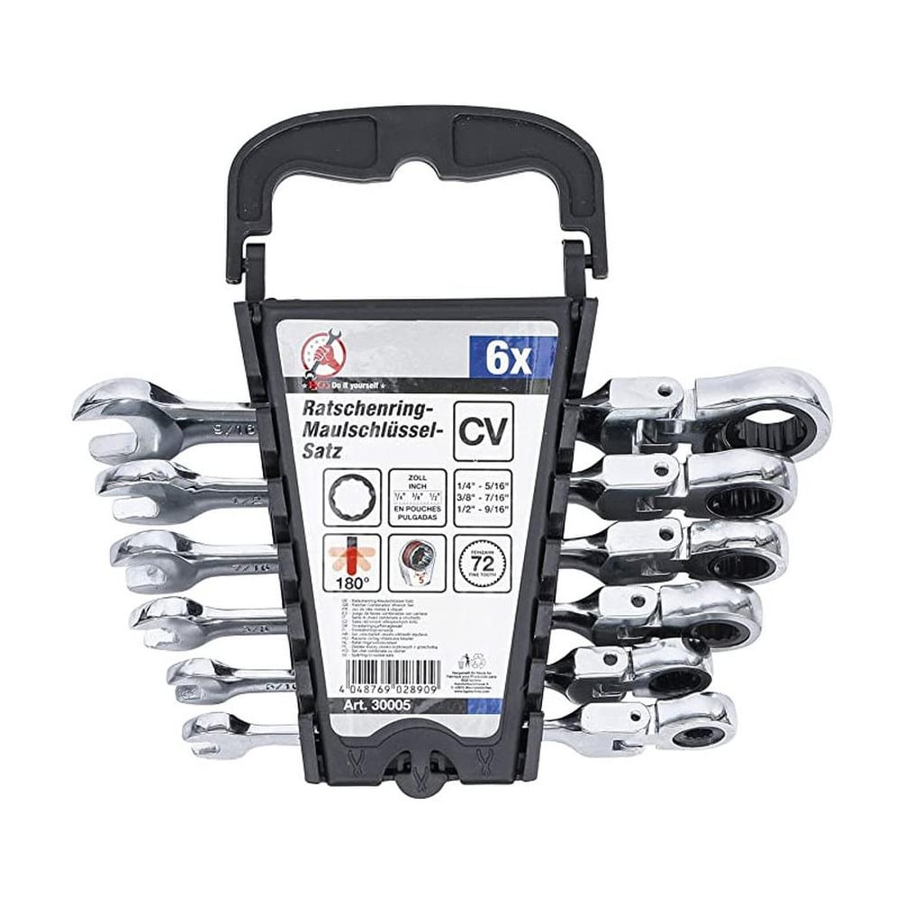 Jeu de Clés Mixtes à Cliquet 6 pcs - Têtes Flexibles, Pouces 1/4 à 9/16 - Précision et Confort d Utilisation - D-Work