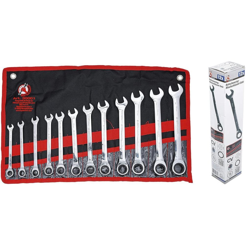 Ref. BGS-30001En savoir + sur Jeu de Clés Mixtes à Cliquet 8-19 mm - 12 pcs - Précision et Confort d Utilisation, Acier, Zones Difficiles - D-Work