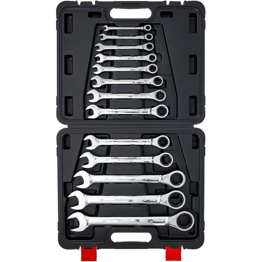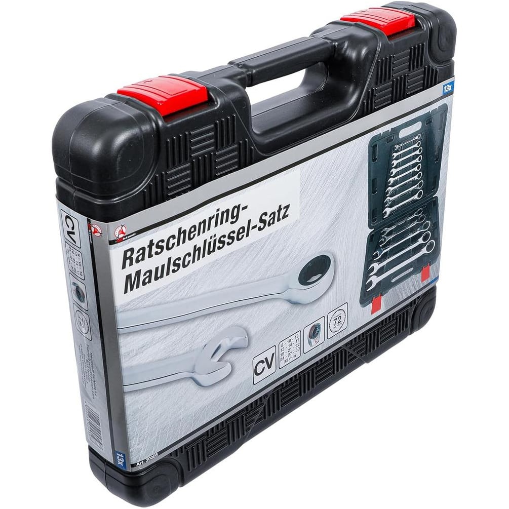 Le Jeu de Clés Mixtes à Cliquet BGS comprend 13 pièces couvrant des tailles de 8 à 32 mm, idéal pour les travaux de mécanique et bricolage. Fabriqué en acier robuste, ce set assure une grande durabilité et une utilisation confortable grâce à son mécanisme à cliquet précis.Caractéristiques principales