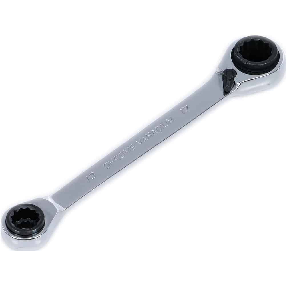 Clé à Cliquet 4-en-1 - 10 x 13 mm 17 x 19 mm - Polyvalente et Pratique - Acier - D-Work