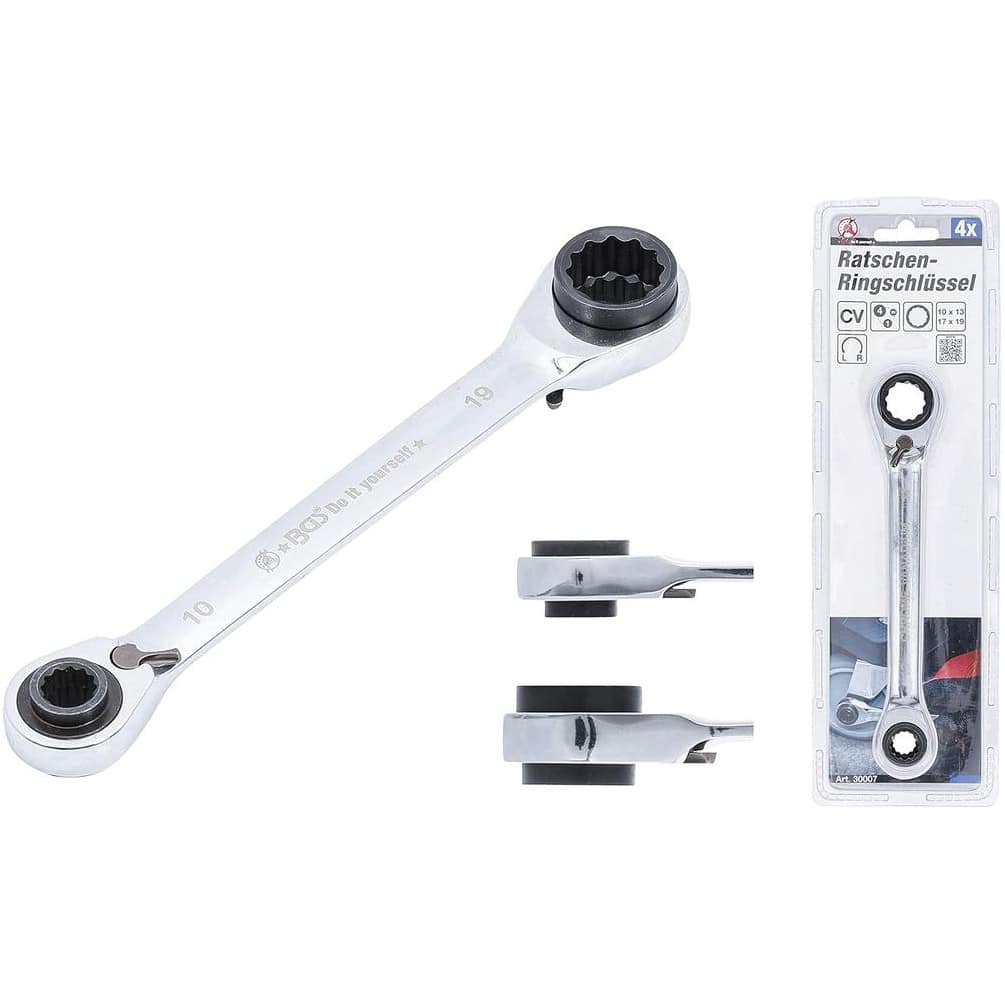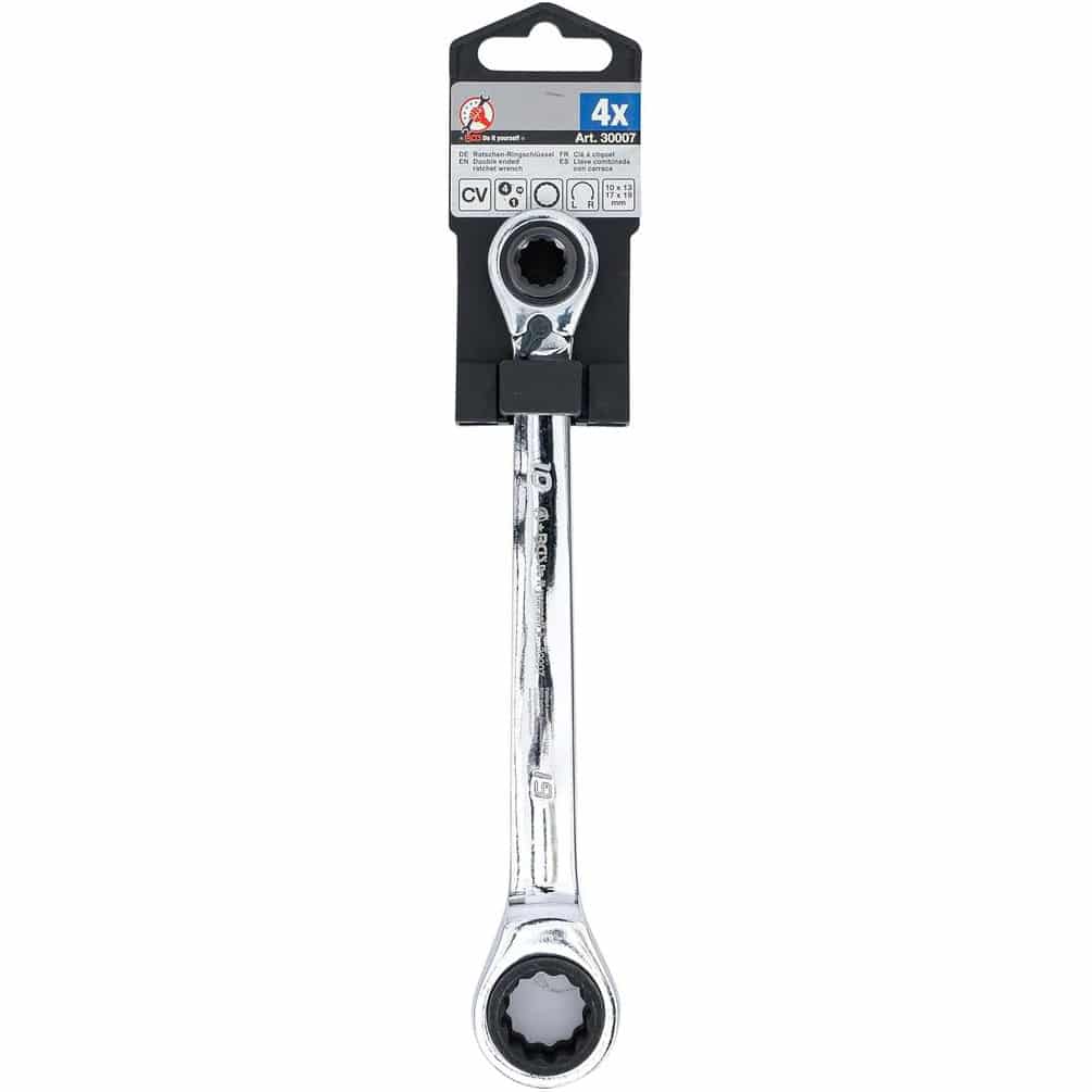 Ref. BGS-30007En savoir + sur Clé à Cliquet 4-en-1 - 10 x 13 mm 17 x 19 mm - Polyvalente et Pratique - Acier - D-Work
