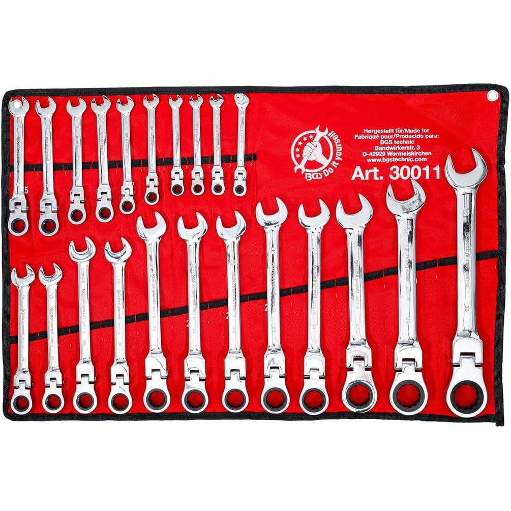 Ref. BGS-30011En savoir + sur Jeu de Clés Mixtes à Cliquet 6-32 mm - Têtes Flexibles, 22 pcs - Précision et Confort d Utilisation - D-Work