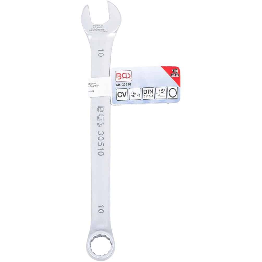 La Clé Mixte 10 mm de la marque BGS est un outil indispensable pour tous les travaux de serrage et desserrage de boulons et écrous. Conçue en acier robuste, elle offre une excellente durabilité et une prise en main confortable. Adaptée aussi bien aux professionnels qu'aux bricoleurs, cette clé mixte combine une extrémité plate et une extrémité à anneau pour une polyvalence optimale.Caractéristiques principales