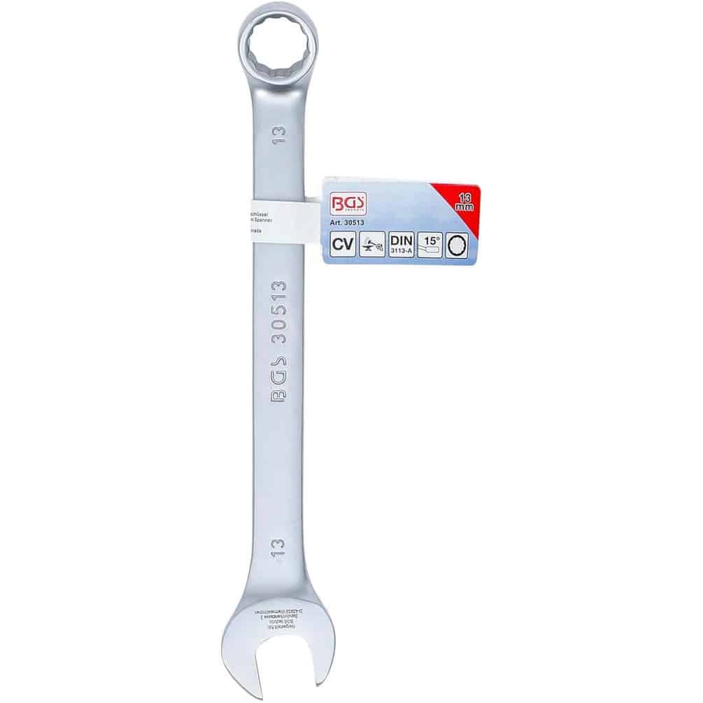 La Clé Mixte 13 mm de la marque BGS est un outil indispensable pour les travaux de mécanique et de bricolage. Conçue en acier robuste, elle offre une excellente résistance à l'usure et une prise en main confortable. Sa taille de 13 mm permet de travailler sur des écrous et boulons de dimensions standard avec précision et efficacité.Caractéristiques principales