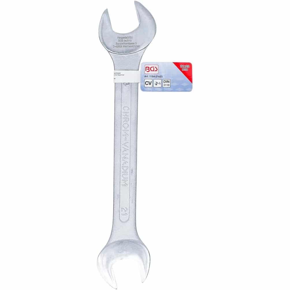 La clé plate 21 x 23 mm de la marque BGS est un outil manuel robuste et polyvalent, conçu pour le serrage et le desserrage d'écrous et boulons de tailles spécifiques. Fabriquée en acier de haute qualité, elle assure une excellente résistance à l'usure et une longue durée de vie.Caractéristiques principales