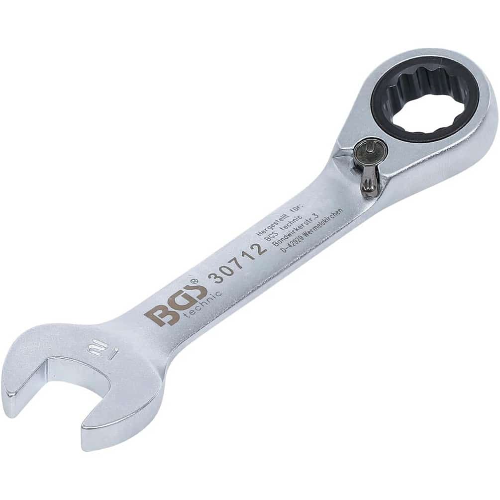 La Clé Mixte à Cliquet Courte Réversible 12 mm de la marque BGS est un outil de précision conçu pour les travaux de mécanique et bricolage. Sa taille compacte et sa fonction réversible permettent une utilisation efficace dans les espaces restreints, offrant maniabilité et rapidité.Caractéristiques principales