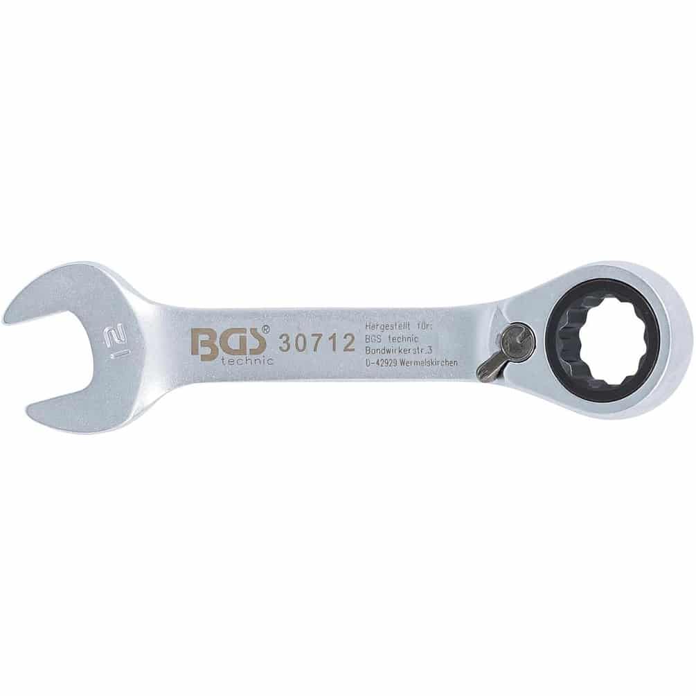 Ref. BGS-30712En savoir + sur Clé Mixte à Cliquet Courte Réversible 12 mm - Précision et Maniabilité, Acier, Zones Difficiles - D-Work