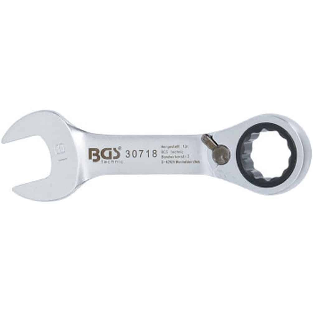 Ref. BGS-30718En savoir + sur Clé Mixte à Cliquet Courte Réversible 18 mm - Précision et Maniabilité, Acier, Zones Difficiles - D-Work