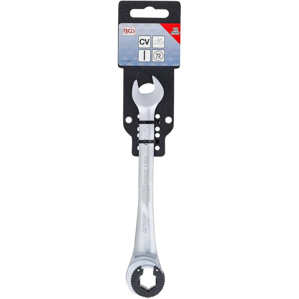 Clé Mixte à Cliquet Ouverte 12 mm - Précision et Confort d Utilisation, Acier, Zones Difficiles - D-Work