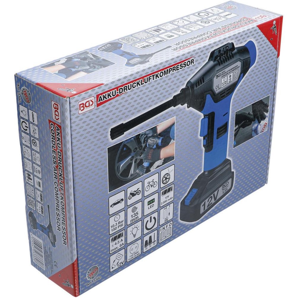 Le compresseur d'air sur batterie BGS est un outil portable et sans fil conçu pour gonfler rapidement et efficacement pneus, ballons, matelas gonflables et autres équipements nécessitant de l'air comprimé. Sa conception compacte et légère facilite son transport et son utilisation dans divers environnements, que ce soit à la maison, en atelier ou en déplacement.