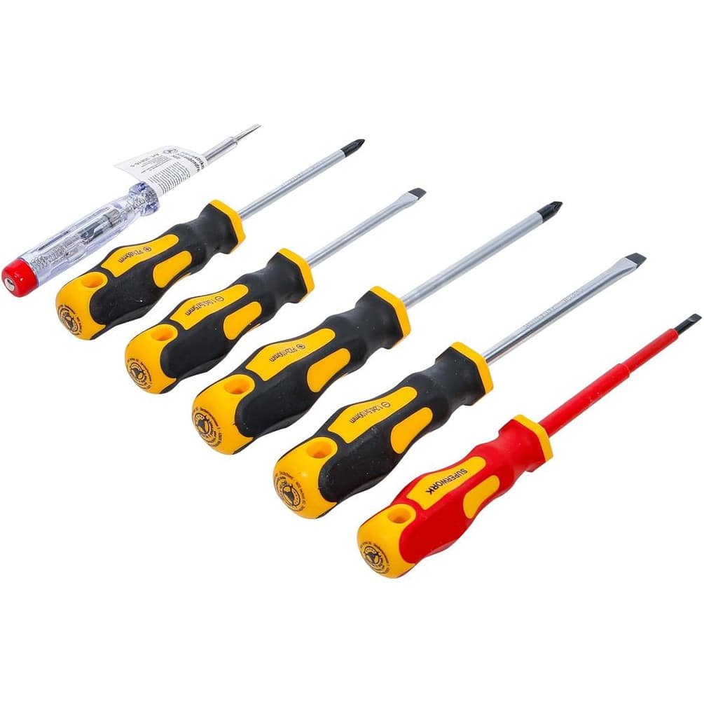 Jeu de Tournevis VDE pour Électricien 6 pcs - Plats et Cruciformes - Isolation Sécurisée et Précision - D-Work