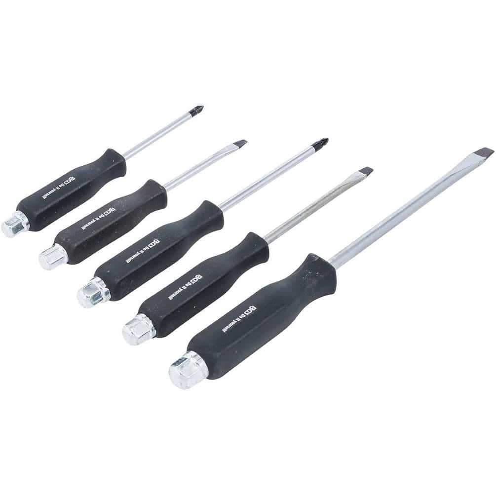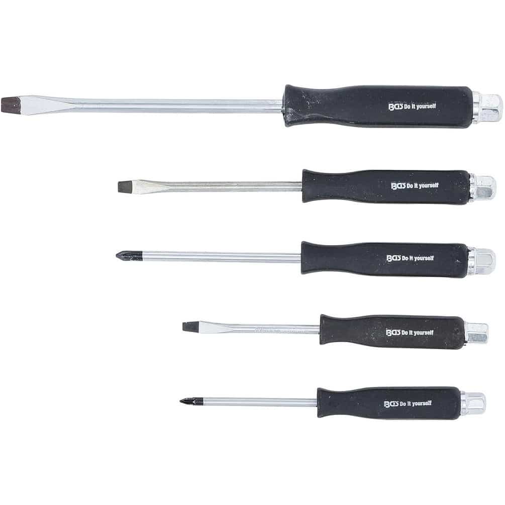 Ce jeu de tournevis BGS comprend 5 pièces essentielles pour tous vos travaux de vissage et dévissage. Conçu avec des manches ergonomiques et des embouts en acier de qualité, il offre une prise en main confortable et une grande précision. Idéal pour les bricoleurs amateurs comme professionnels, ce set polyvalent facilite l'assemblage, la réparation et l'entretien de vos équipements.Caractéristiques principales