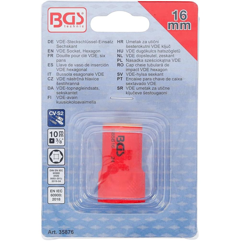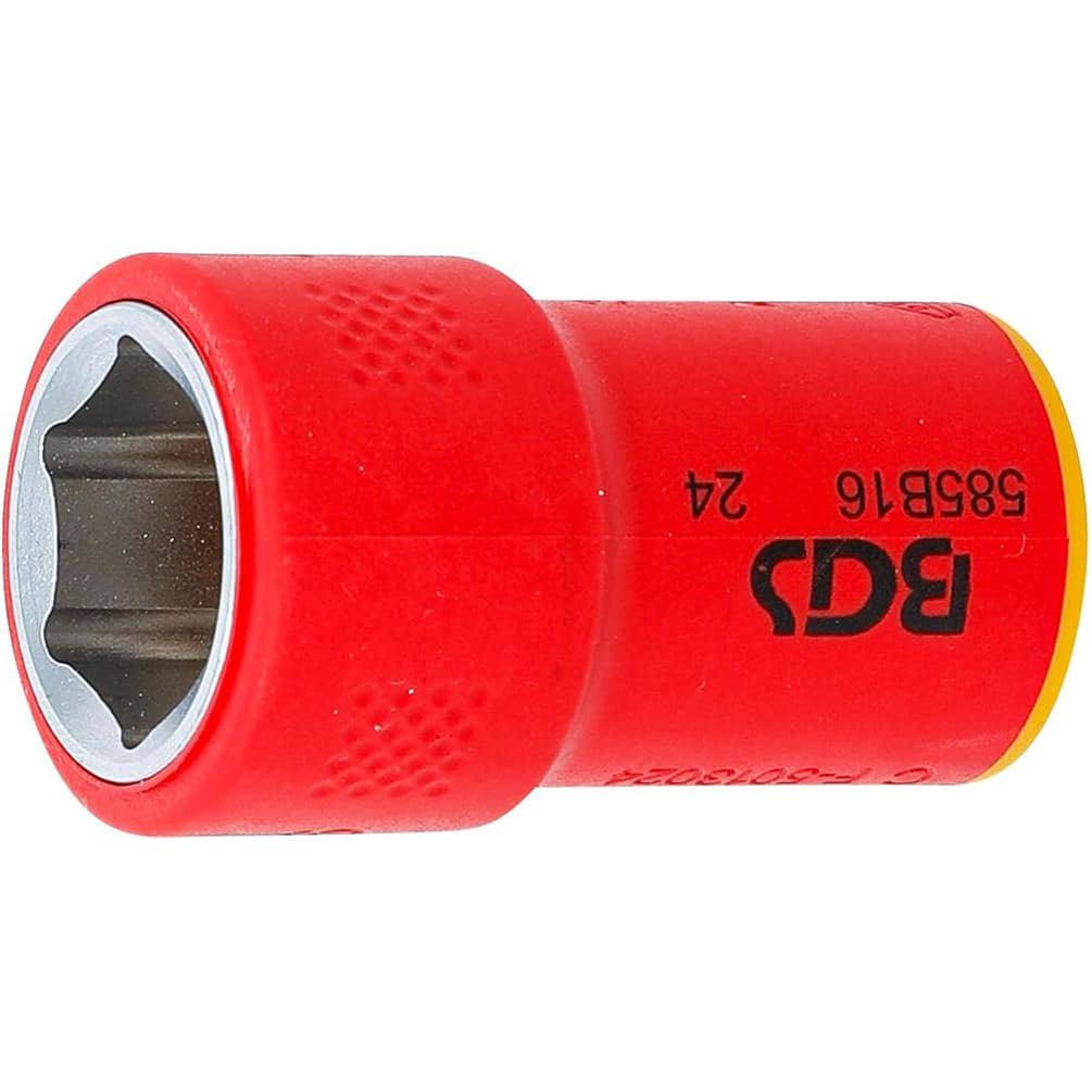 La douille pour clé VDE six pans 10 mm (3/8") - 16 mm de la marque BGS est un outil professionnel conçu pour les travaux électriques nécessitant une isolation renforcée. Conforme aux normes VDE, elle garantit une sécurité optimale lors de l'utilisation sur des installations sous tension jusqu'à 1000 V. Sa conception six pans assure une prise ferme et précise sur les écrous et boulons, facilitant ainsi les opérations de serrage et desserrage.Caractéristiques principales
