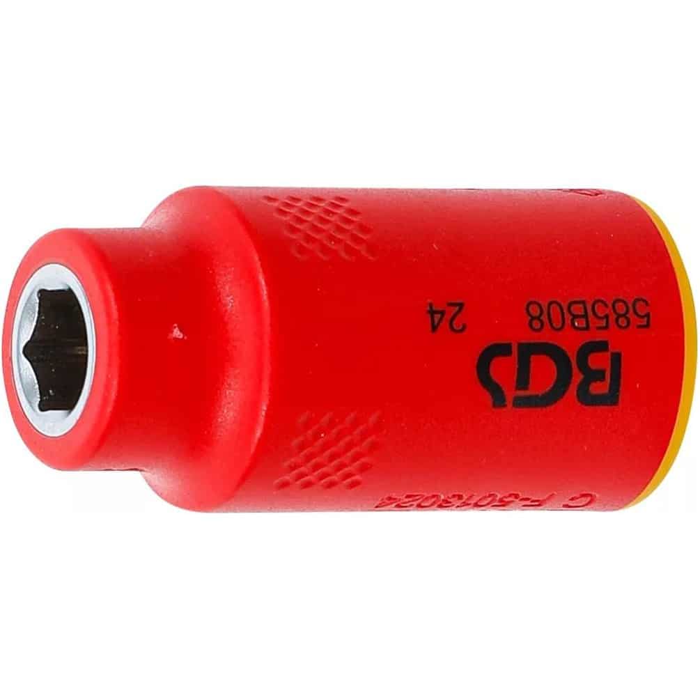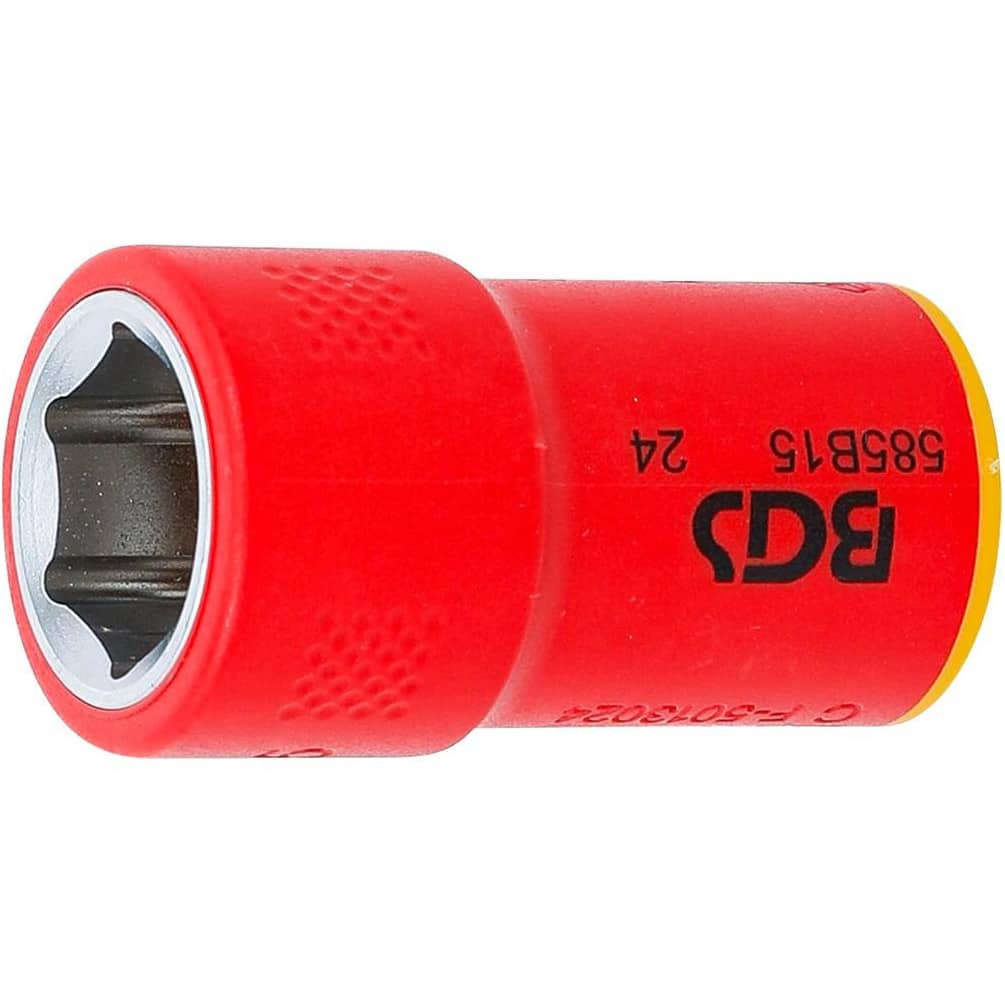 La douille pour clé VDE six pans 10 mm (3/8") - 15 mm de la marque BGS est un outil professionnel conçu pour les travaux électriques nécessitant une sécurité accrue. Certifiée VDE, elle garantit une isolation optimale contre les chocs électriques, assurant ainsi la protection de l'utilisateur lors de manipulations sous tension. Sa conception six pans permet une prise ferme et précise sur les écrous et boulons, facilitant le serrage et le desserrage.Caractéristiques principales