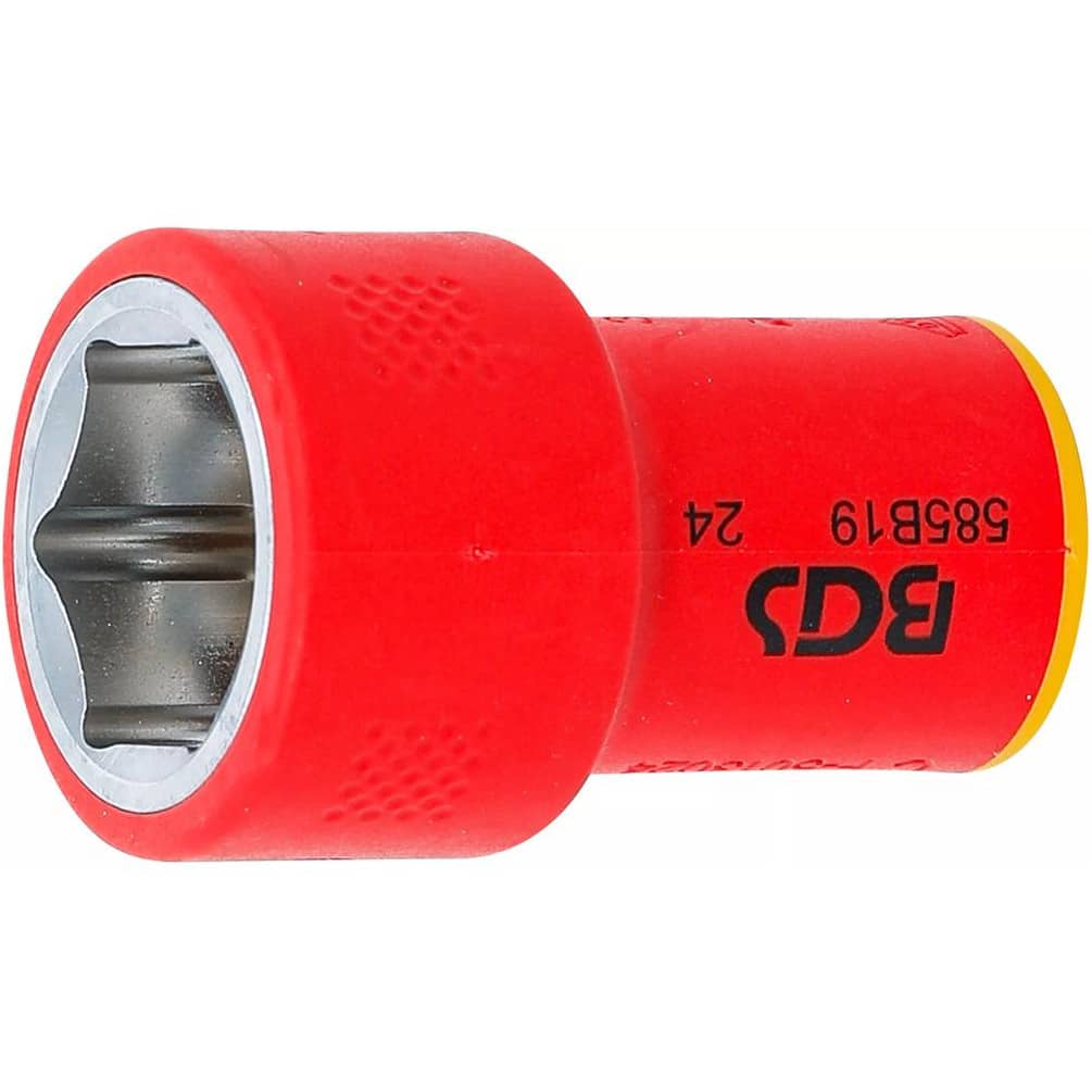 La douille pour clé VDE six pans 10 mm (3/8") - 22 mm de la marque BGS est un outil professionnel conçu pour les travaux électriques nécessitant une isolation renforcée. Elle garantit une sécurité optimale lors de l'utilisation sur des installations sous tension jusqu'à 1000 V. Sa conception six pans assure une prise ferme et précise sur les écrous et boulons, facilitant ainsi les opérations de serrage et desserrage.Caractéristiques principales