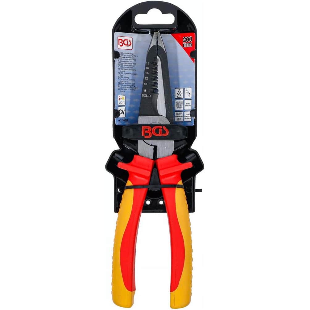 La pince à dénuder VDE 200 mm de la marque BGS est un outil professionnel conçu pour retirer l'isolation des fils électriques en toute sécurité. Grâce à sa certification VDE, elle garantit une protection optimale contre les chocs électriques jusqu'à 1000 V, ce qui en fait un outil indispensable pour les électriciens et les bricoleurs exigeants.