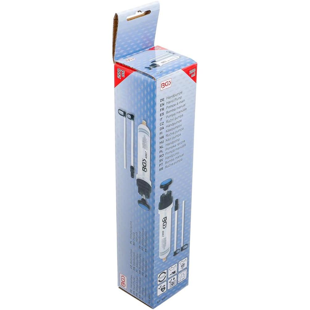 La Pompe à Main 200 ml de la marque BGS est un outil compact et pratique conçu pour le transfert manuel de liquides en petite quantité. Sa capacité de 200 ml la rend idéale pour des applications précises et contrôlées, notamment dans les ateliers, laboratoires ou pour des usages domestiques.