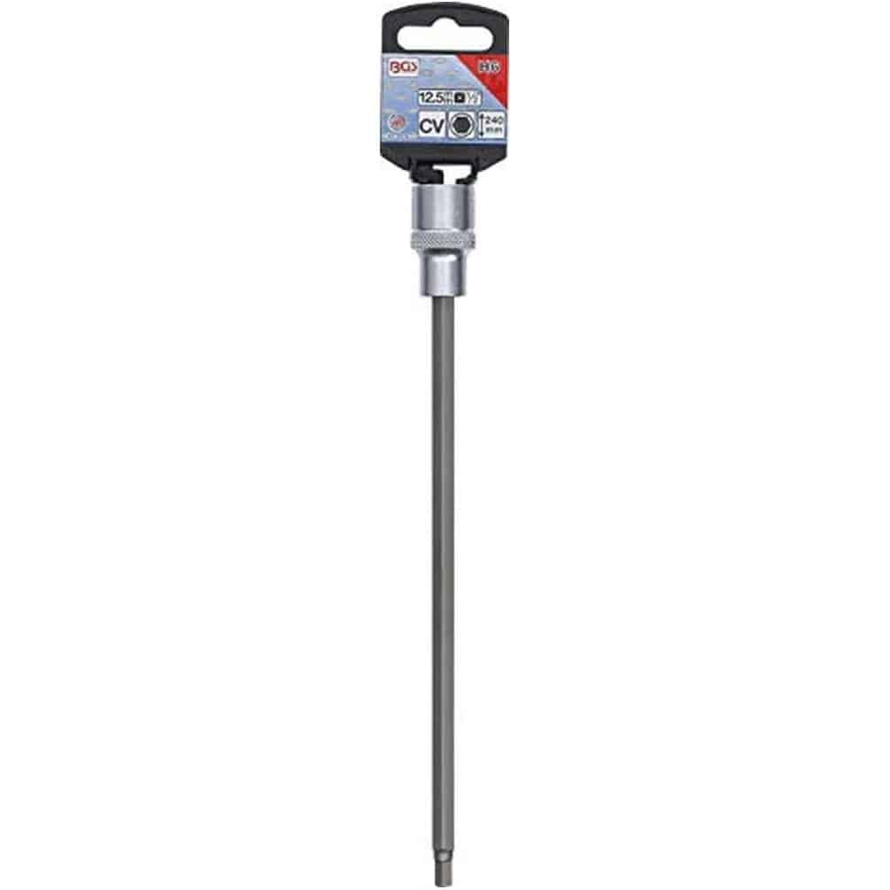 La Douille à Embouts BGS de 240 mm de longueur est un outil professionnel conçu pour les travaux de vissage et dévissage nécessitant précision et robustesse. Avec un diamètre d'entraînement de 12,5 mm (1/2") et un six pans intérieurs de 6 mm, cette douille assure une excellente prise sur les embouts, garantissant un travail efficace et sécurisé.Caractéristiques principales