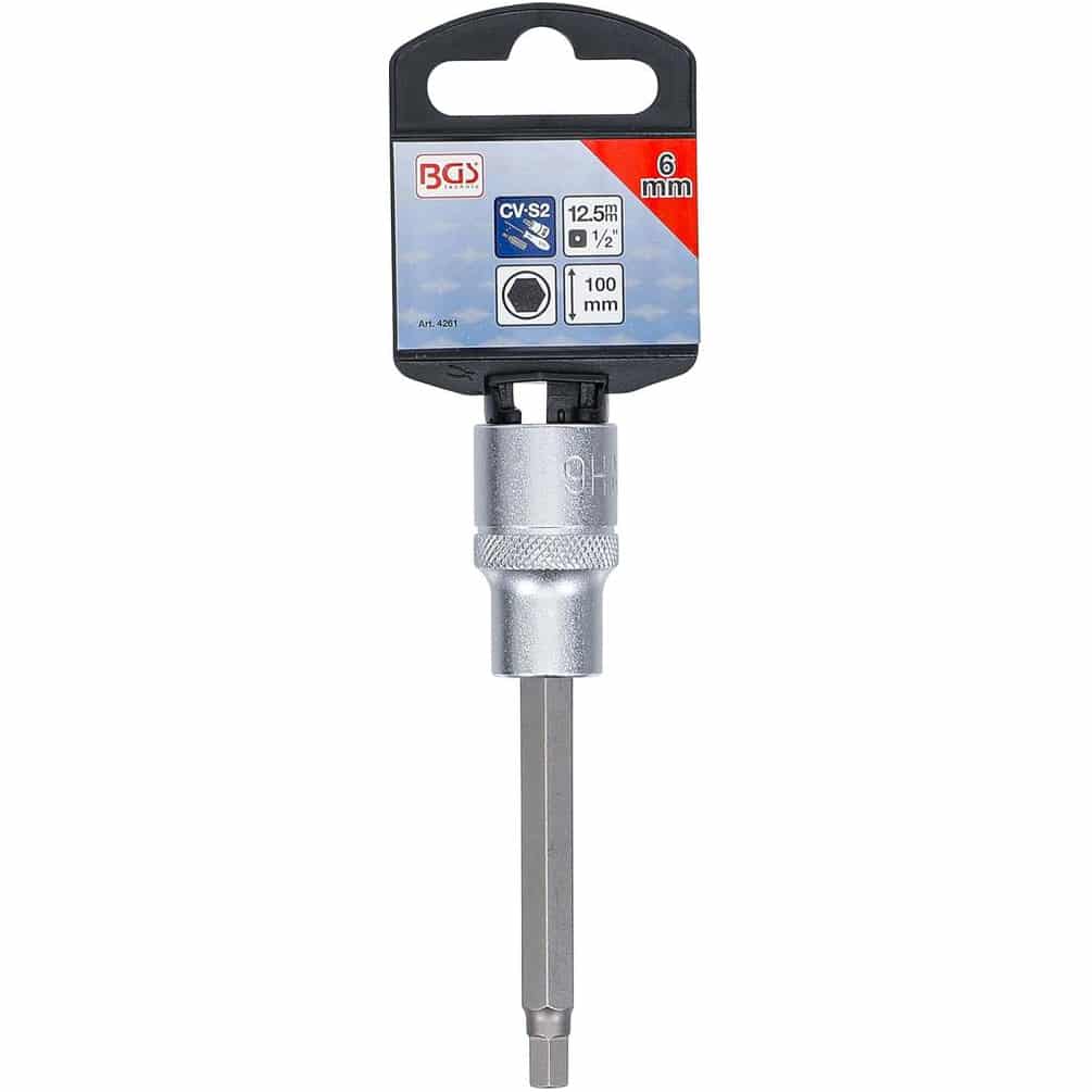Ref. BGS-4261En savoir + sur Douille à Embouts 100 mm - 12,5 mm (1/2), Six Pans Intérieurs 6 mm - Précision et Robustesse, Acier - D-Work