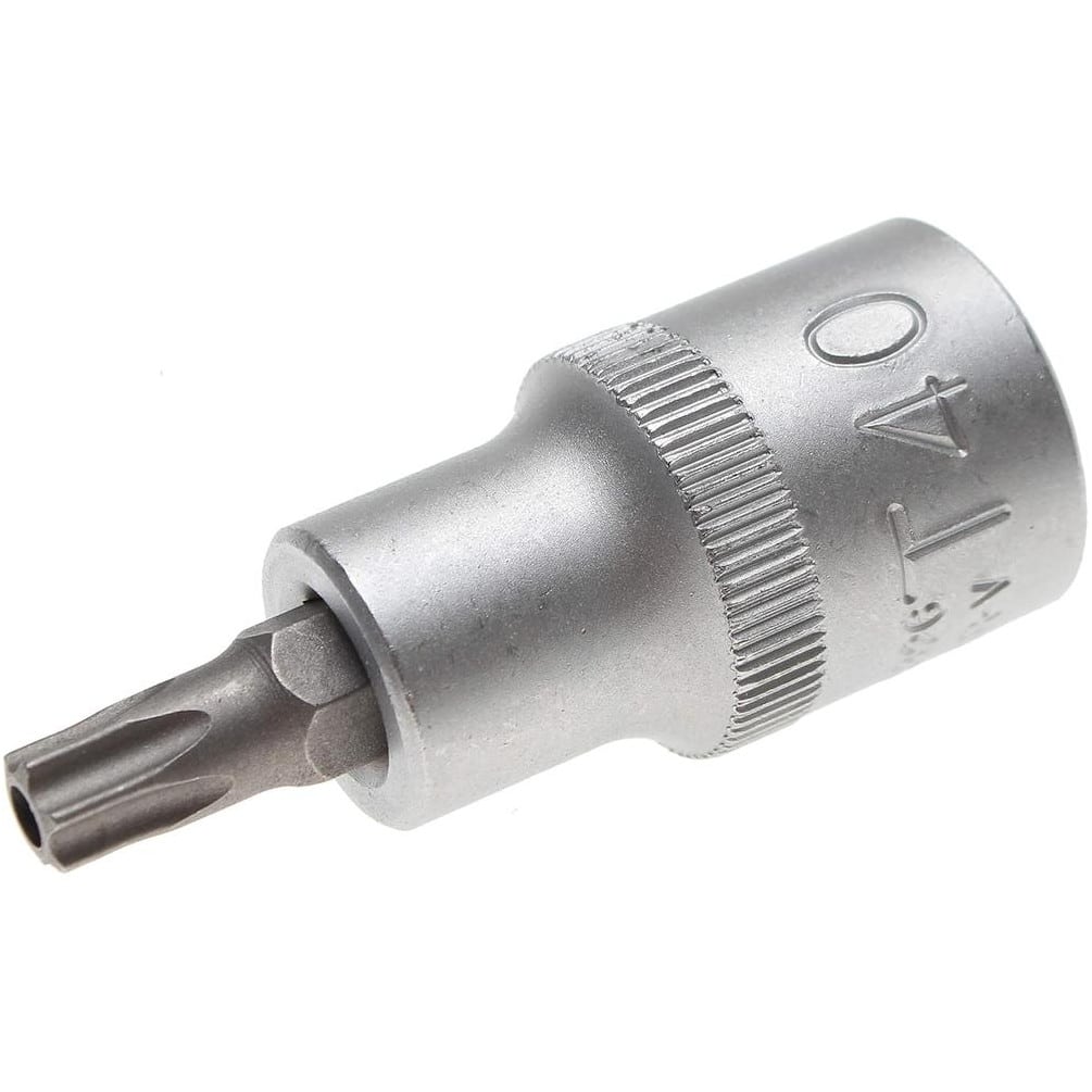 Utilisez cette douille avec un cliquet ou une clé à douille 1/2" pour visser ou dévisser des vis Torx T40. Assurez-vous que la douille est bien engagée sur la vis pour éviter tout glissement. Convient pour les travaux mécaniques, automobiles et de bricolage.