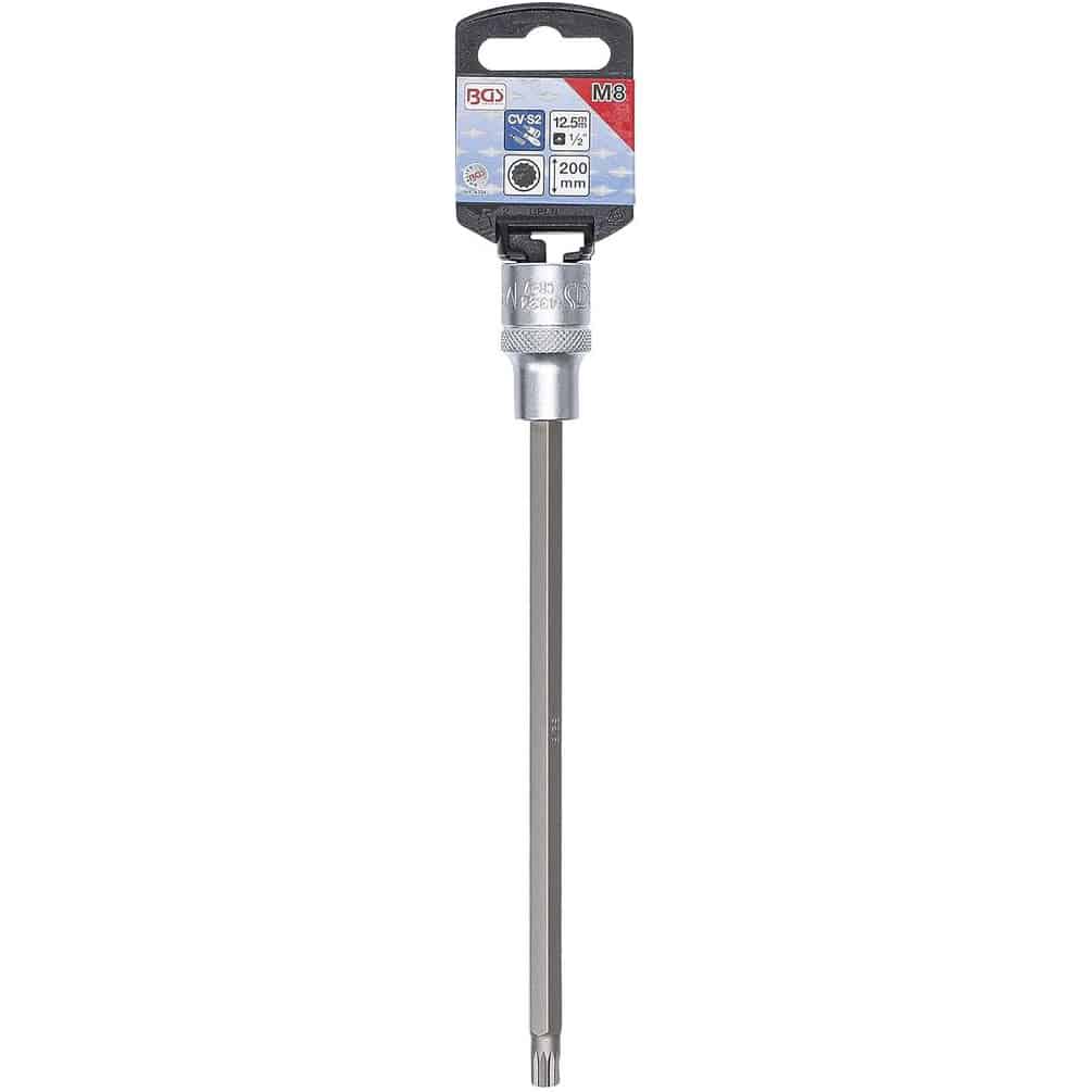 Utilisez cette douille avec une clé à cliquet ou un tournevis dynamométrique 1/2" pour serrer ou desserrer les vis à denture multiple intérieure XZN M8. Sa longueur de 200 mm facilite l'accès dans les espaces restreints. Veillez à choisir la bonne taille de douille pour éviter d'endommager les vis.