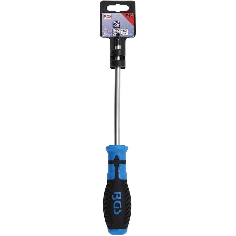 Le tournevis cruciforme PZ3 de 150 mm de longueur de lame est un outil indispensable pour les travaux de vissage nécessitant précision et robustesse. Conçu par BGS, ce tournevis offre une prise en main confortable et une excellente durabilité grâce à sa fabrication de qualité.Caractéristiques principales