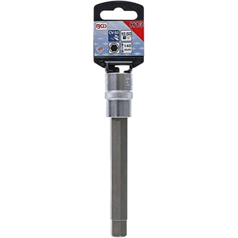 La Douille à Embouts BGS de 140 mm de longueur est un outil professionnel conçu pour les travaux de vissage et dévissage nécessitant une prise précise. Avec un carré d'entraînement de 12,5 mm (1/2") et un six pans intérieurs de 13 mm, cette douille assure une excellente transmission de couple et une grande robustesse.Caractéristiques principales