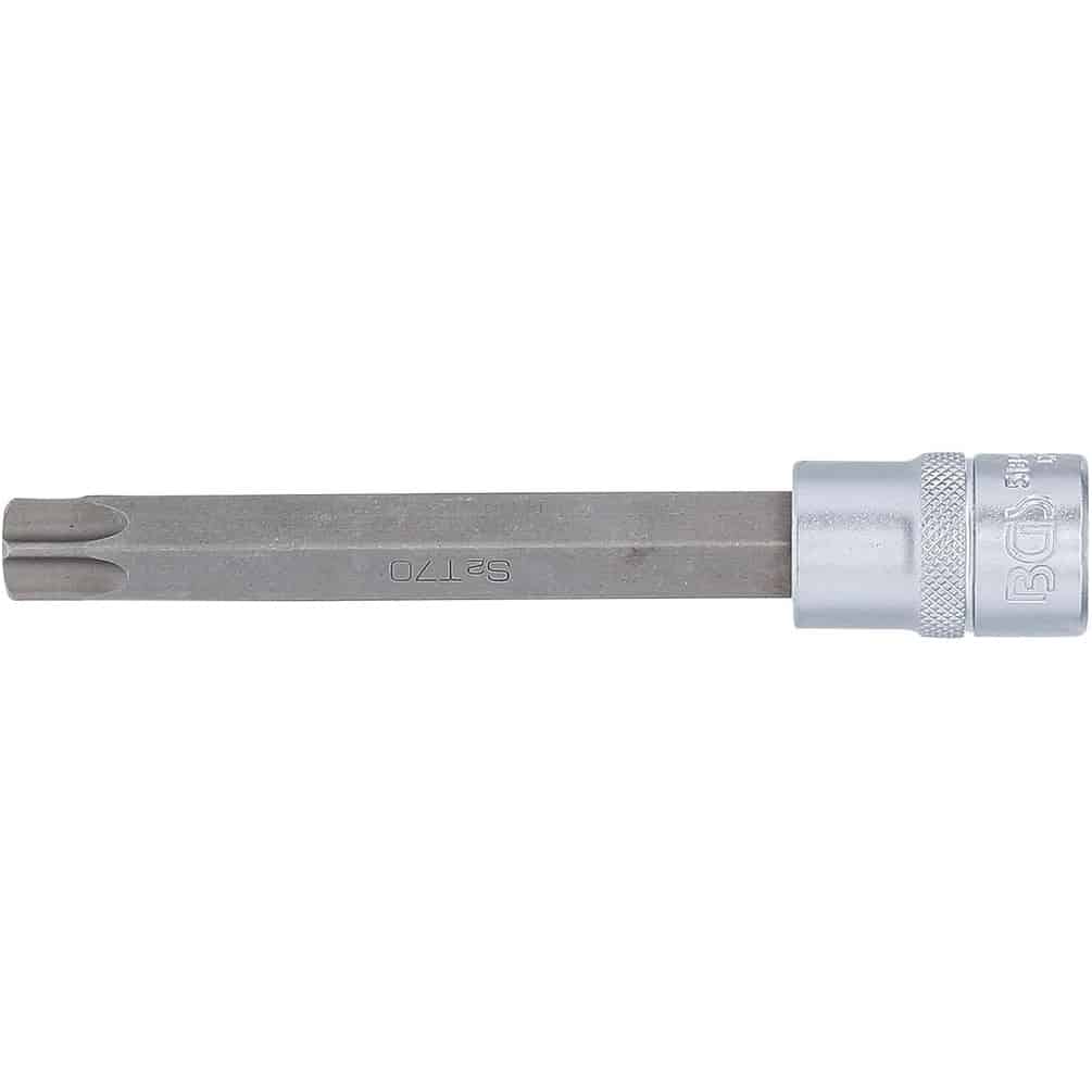 La douille à embouts BGS de 140 mm de longueur avec un profil Torx T70 est un outil professionnel conçu pour les travaux de vissage nécessitant précision et robustesse. Adaptée aux clés à douille 1/2" (12,5 mm), elle permet un serrage efficace des vis Torx, très utilisées dans l'industrie automobile et mécanique.Caractéristiques principales