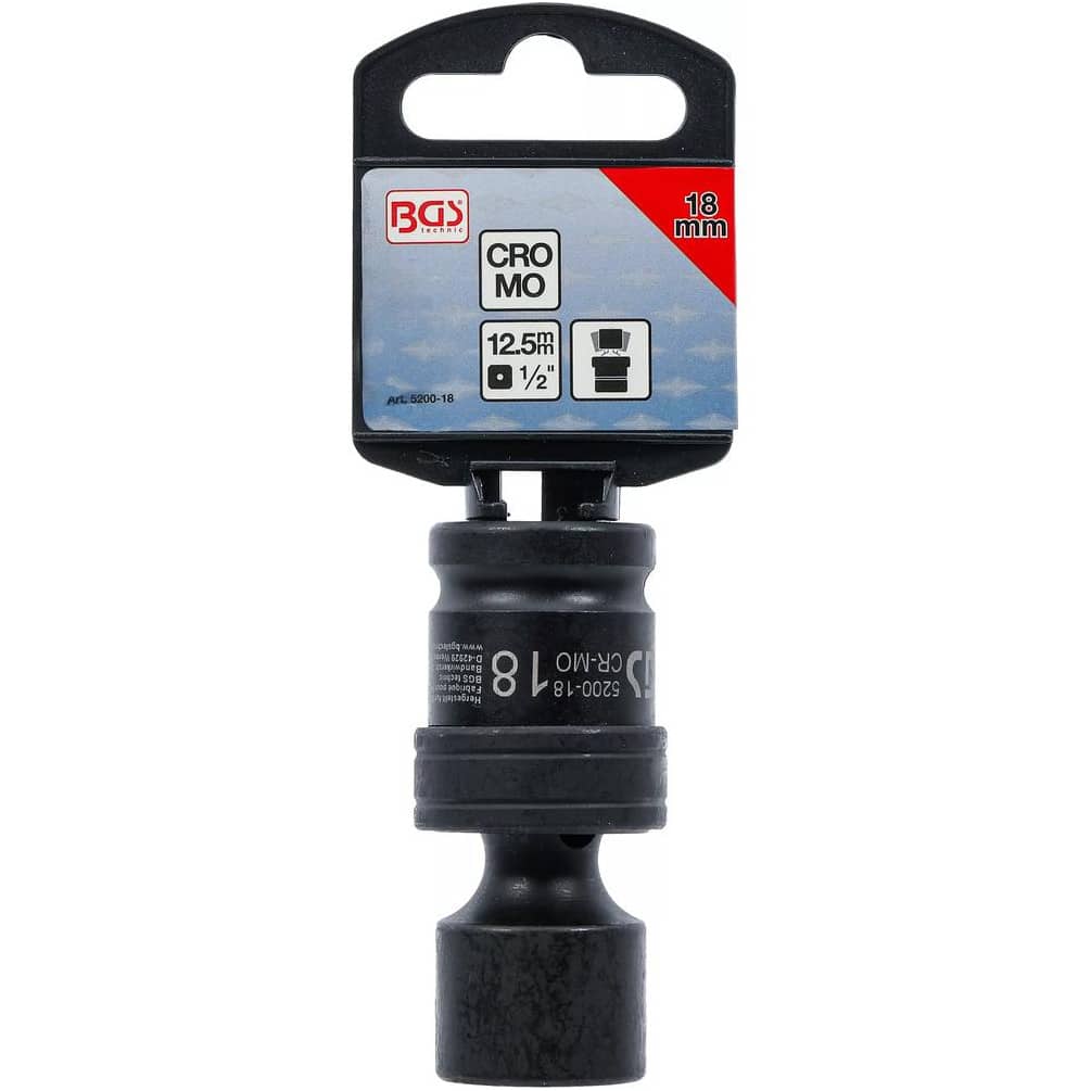 La Douille à Rotule Choc 12,5 mm (1/2") 18 mm de la marque BGS est un outil robuste conçu pour les travaux de mécanique et d'entretien nécessitant une grande précision et une résistance élevée. Sa conception à rotule permet un accès facilité aux écrous et boulons dans des angles difficiles, offrant ainsi une grande flexibilité d'utilisation.Caractéristiques principales
