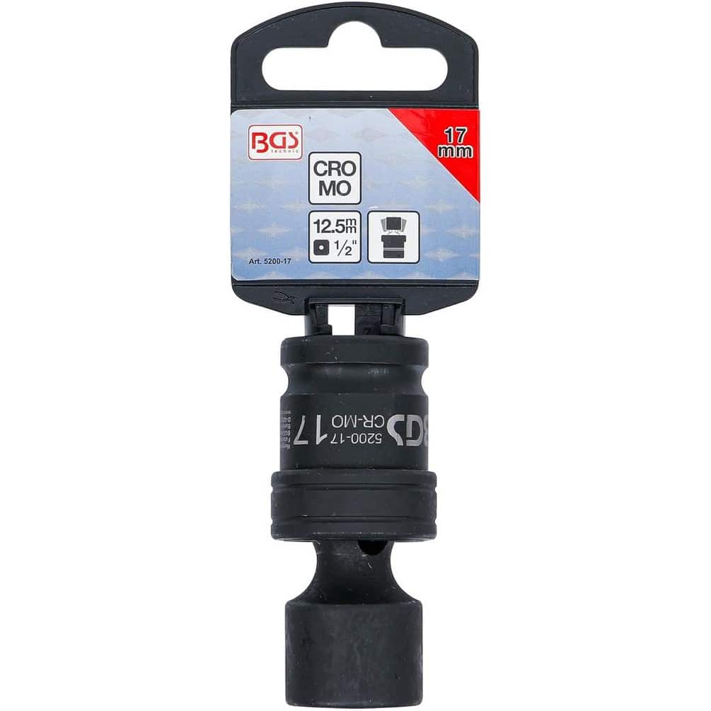 La Douille à Rotule Choc 12,5 mm (1/2") 17 mm de la marque BGS est un outil robuste conçu pour les travaux de mécanique et d'entretien nécessitant une grande précision et une résistance élevée. Sa conception à rotule permet un accès facilité aux écrous et boulons dans des angles difficiles, offrant ainsi une meilleure maniabilité et efficacité.Caractéristiques principales