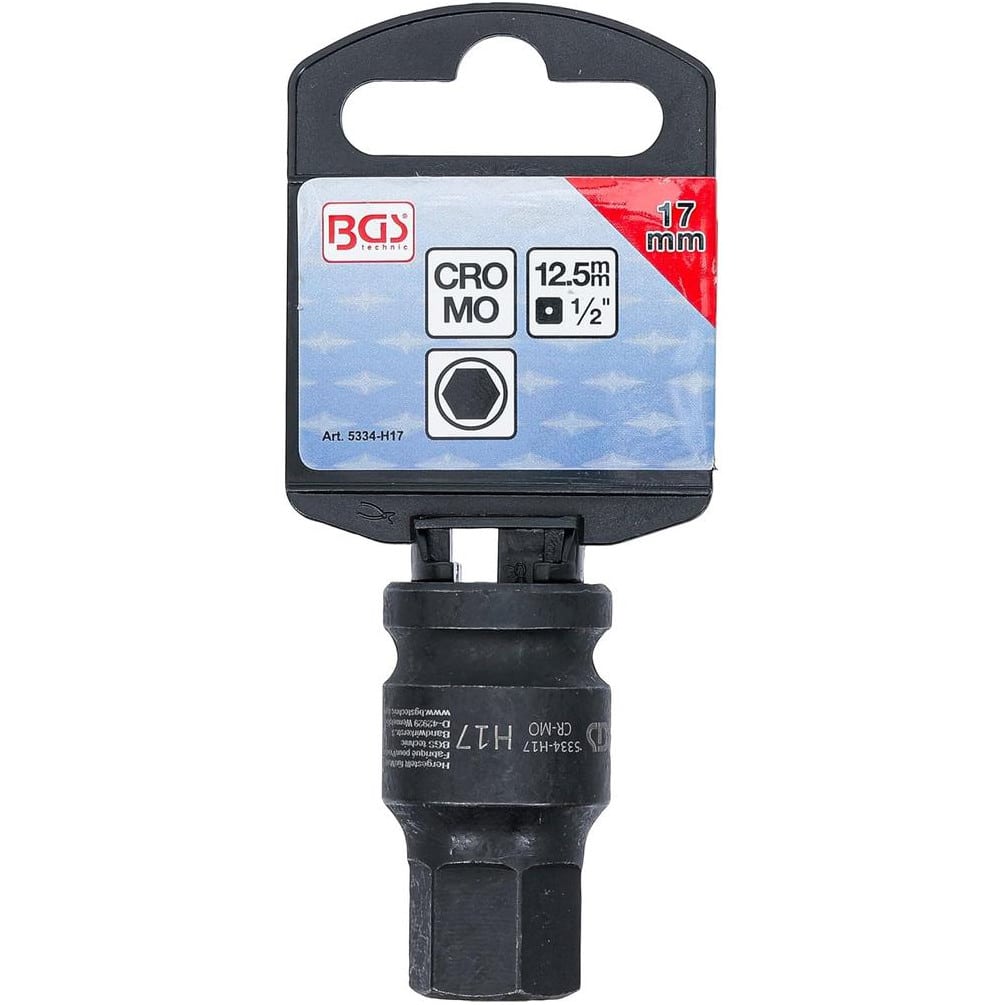 Ref. BGS-5334-H17En savoir + sur Douille à Embouts à Choc 42 mm - 12,5 mm (1/2), Six Pans Intérieurs 17 mm - Résistante et Précise - D-Work